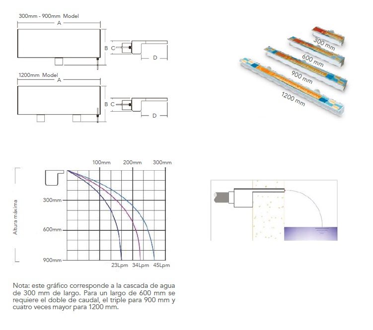 | Modelo | Cascada 300 mm, Cascada 600 mm, Cascada 900 mm, Cascada 1200 mm |