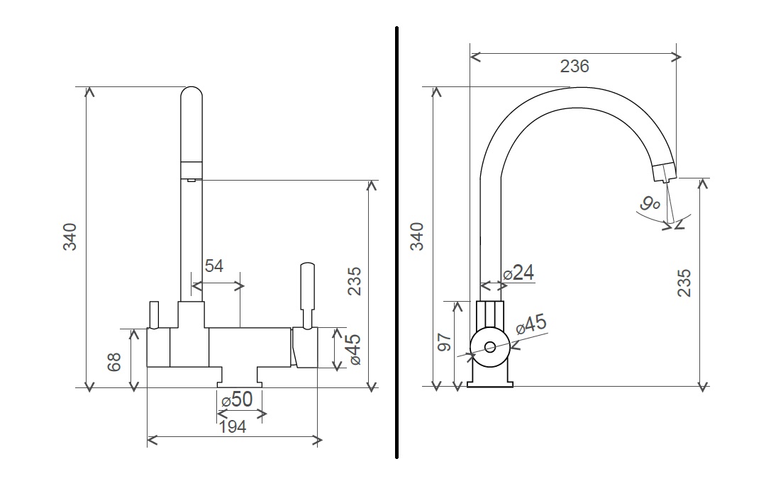 Un solo grifo ocupa menos espacio, es más elegante, seguro e higiénico. Todos los accesorios para la instalación están incluidos.