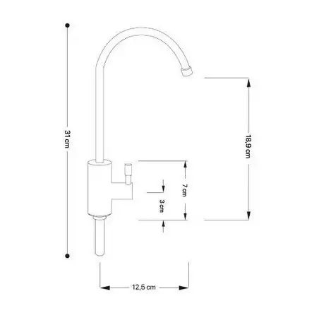 Fabricado en metal cromado de alta resistencia, cuenta con un sistema de cierre cerámico preciso y una palanca de accionamiento de ángulo recto para un control sencillo del flujo de agua filtrada. Presenta un caño alto curvado que permite un giro de 360 grados, facilitando el llenado de recipientes.