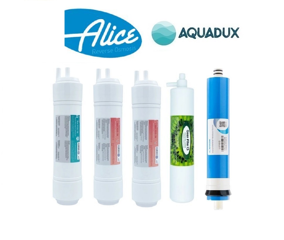 Kit de filtros y membrana para la ósmosis compacta Alice de Ionfilter. Diseñados con conexión espiga a 3/8″, los filtros son una alternativa compatible con modelos de ósmosis de marcas como GreenFilter o Ionfilter.