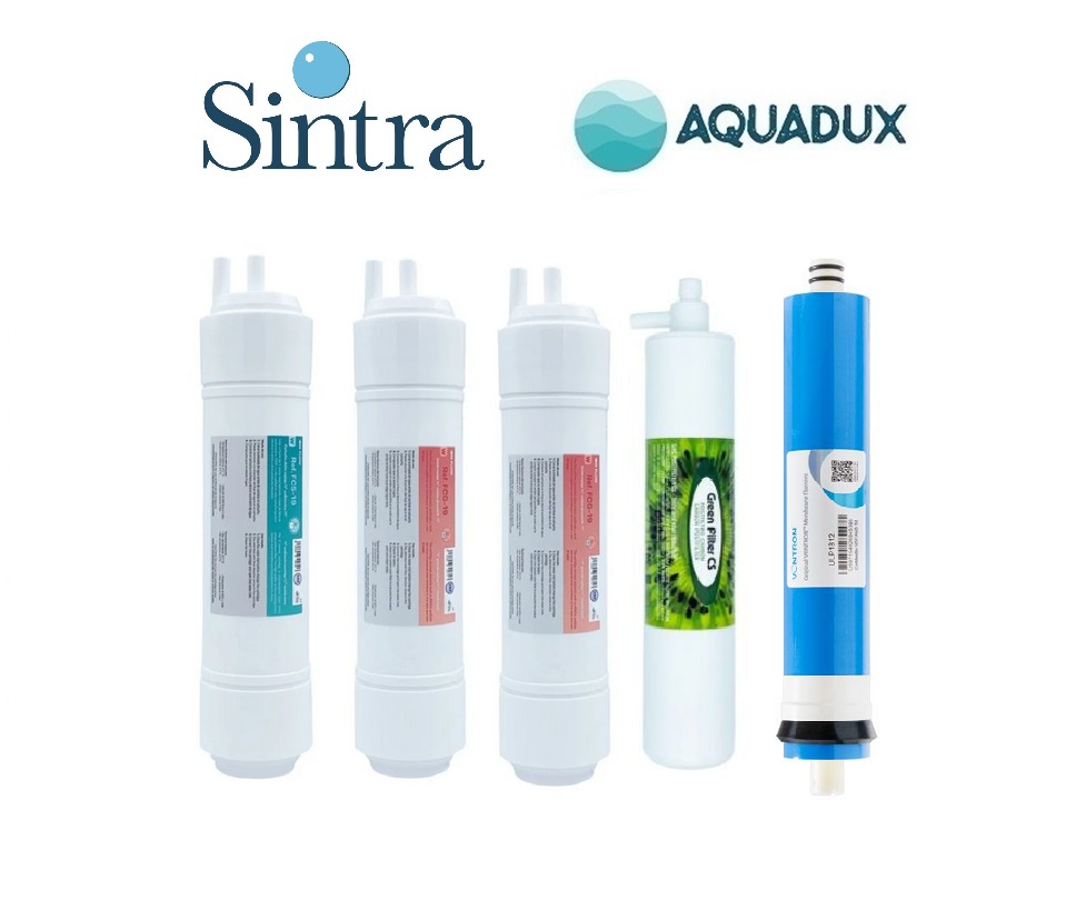 Kit de filtros y membrana para la ósmosis compacta Sintra de Ionfilter. Diseñados con conexión espiga a 3/8″, los filtros son una alternativa compatible con modelos de ósmosis de marcas como GreenFilter o Ionfilter.